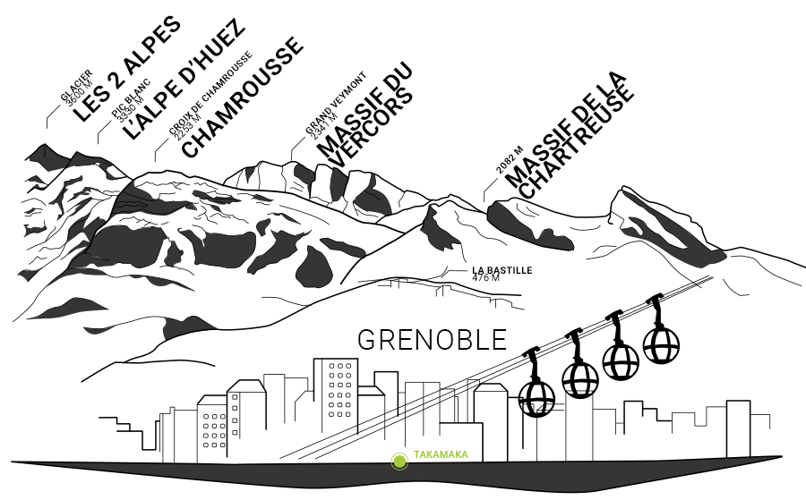 L’agence Takamaka Grenoble vous attend ! Située en face de la bastille et a proximité des quais, venez réserver votre activité ou louer des vélos, du matériel de montagne ou aquatique !